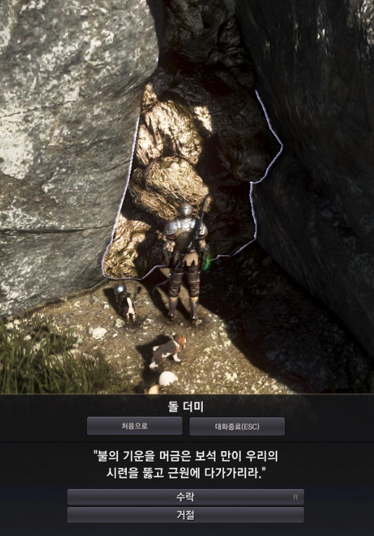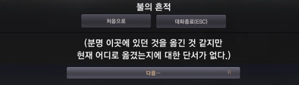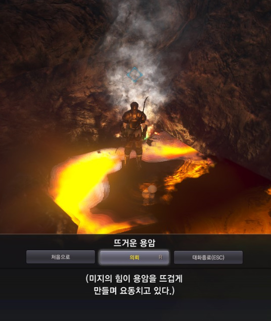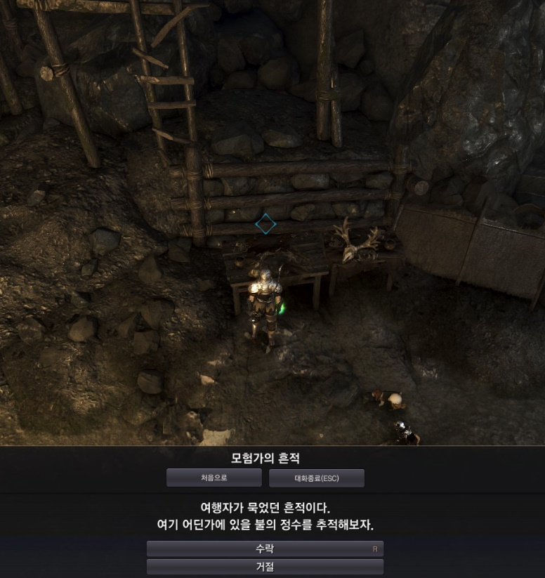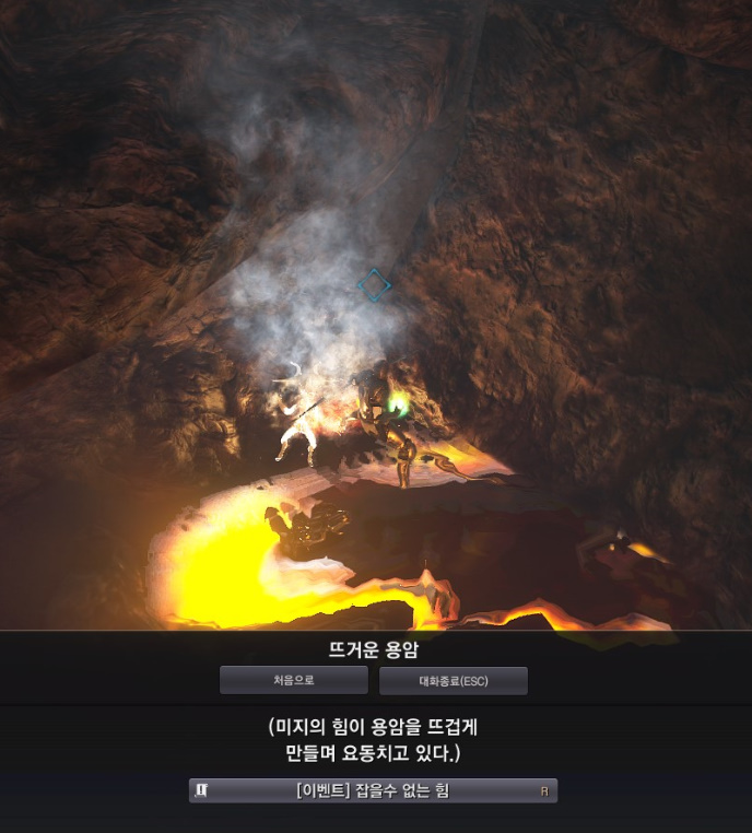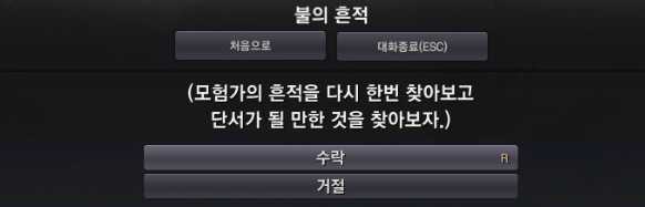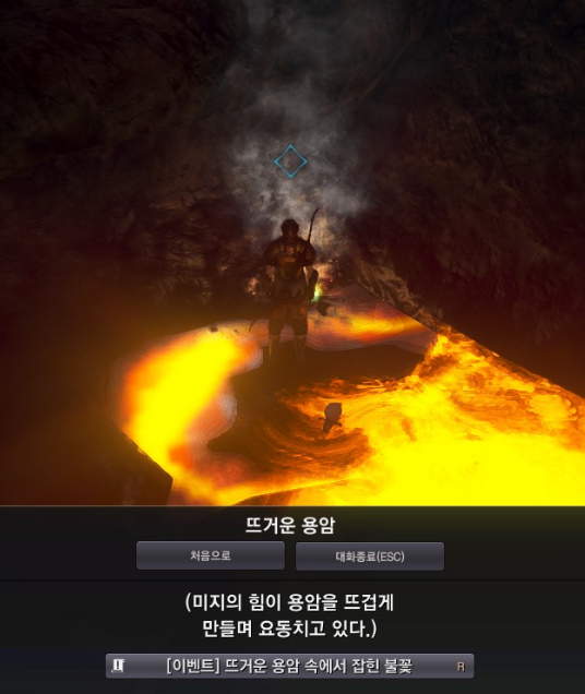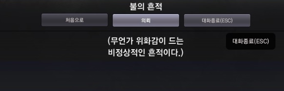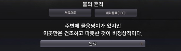 주변을 찾아보면 불의 흔적이 있습니다. 이 역시 퀘스트 아이콘이 떠있으니 찾기 쉽습니다.