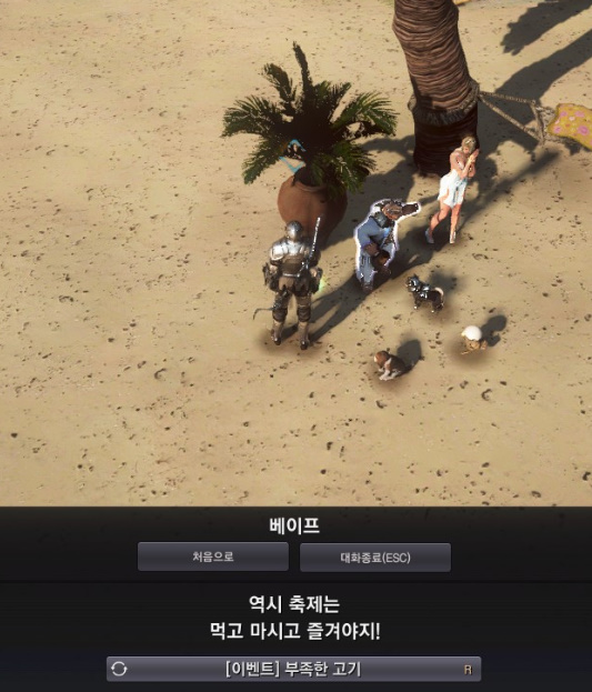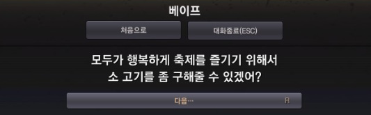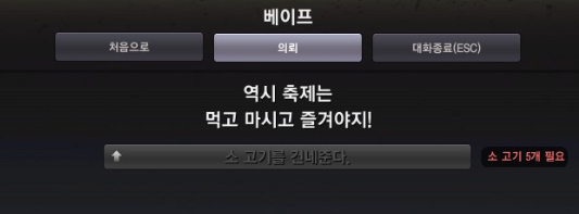 베이프에게 말을 걸면 [이벤트] 부족한 고기 퀘스트를 받을 수 있고 일일 퀘스트 입니다.