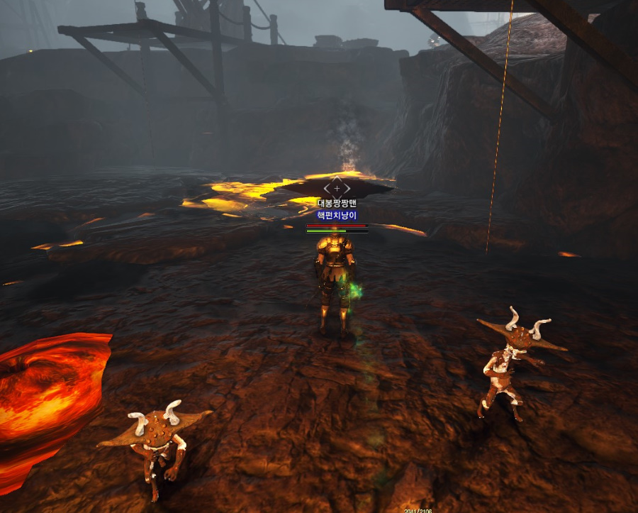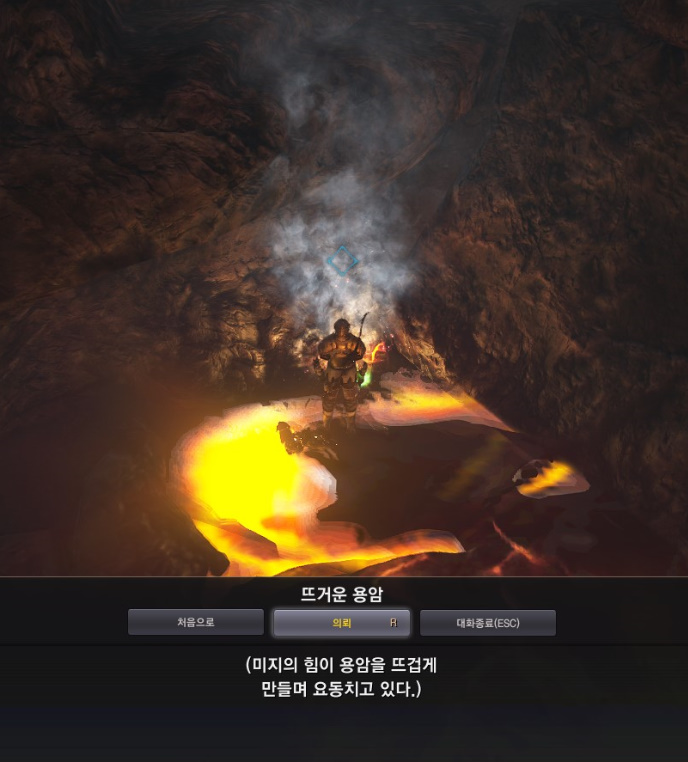 구석을 살펴보면 연기나는 용암이 있습니다.
