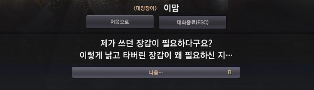 이맘은 전에 쓰던 대장장이 장갑을 주겠다며 본인이 사용할