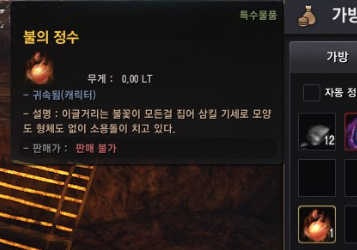 불의 정수를 잡기 위해선 특수한 장갑이 필요합니다.