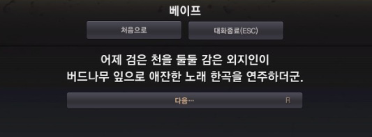 소 고기를 건네주니 베이프가 외지인의 관한 힌트를 줍니다.