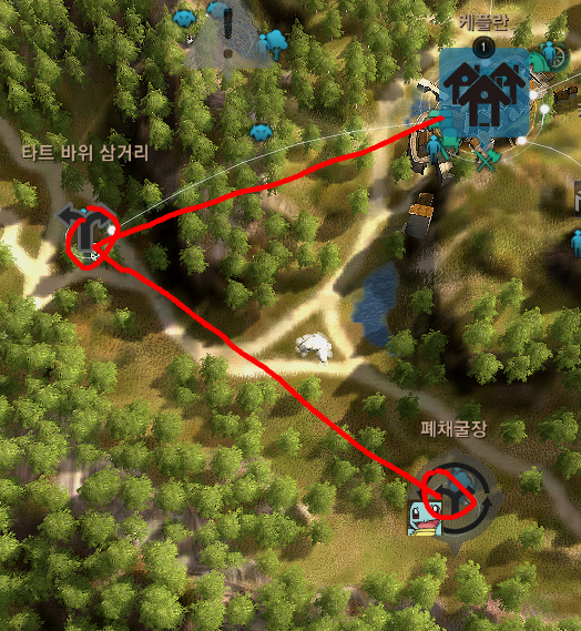 타트 바위 삼거리랑 폐채굴장이랑 거점을 연결합니다.