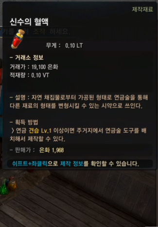 ㄴ 신수의 혈액 (연금 재료에 대지의 흔적이 들어감)
