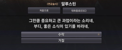 <연금술사> 알루스틴 한테 도착하면 퀘스트가 활성화 되어 있습니다.