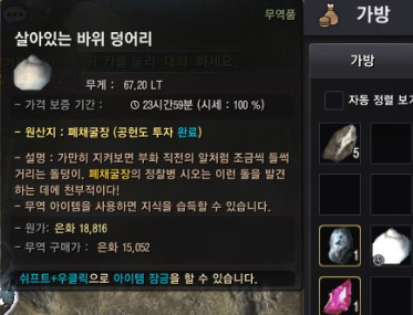 그럼 시오 한테 [살아있는 바위 덩어리] 무역품을 구입 할 수 있습니다.