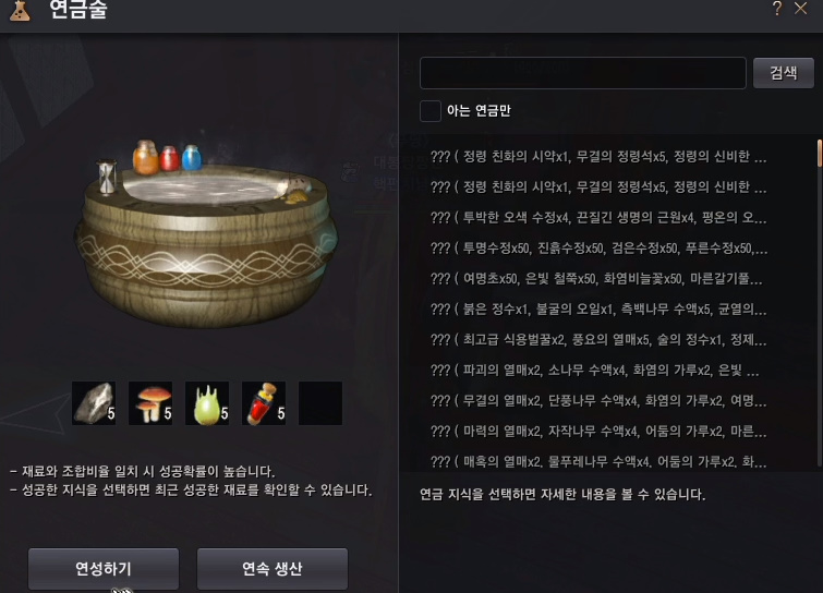 연금술 레벨과 상관없이 100% 성공됩니다.